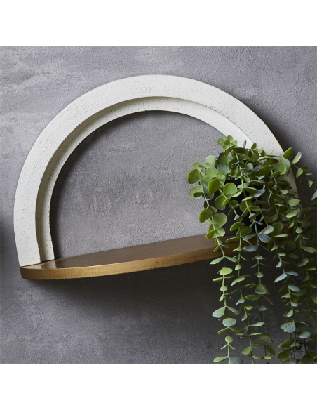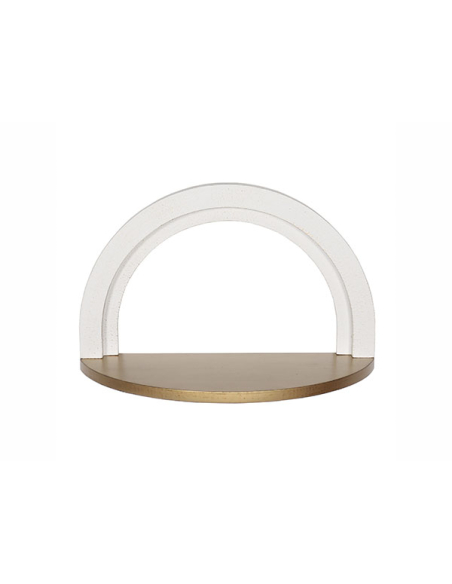 Estante pared Arco metal blanco y dorado. Agrega un toque de elegancia y funcionalidad a tus paredes con el estante Arco de metal blanco y dorado. Con unas medidas de 40x18x25 cm, es perfecto para colocar objetos decorativos.