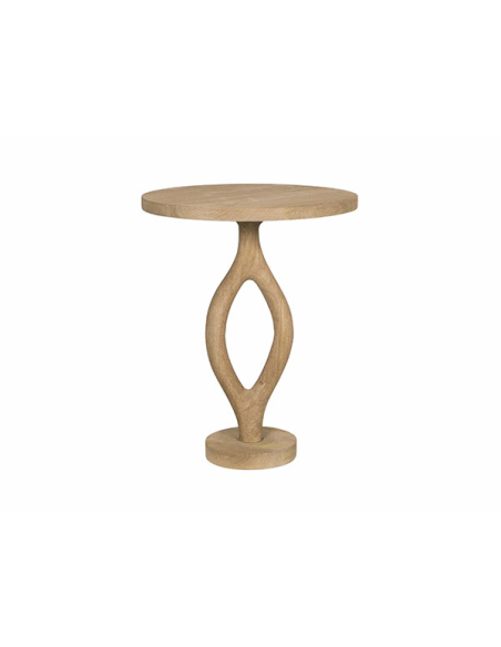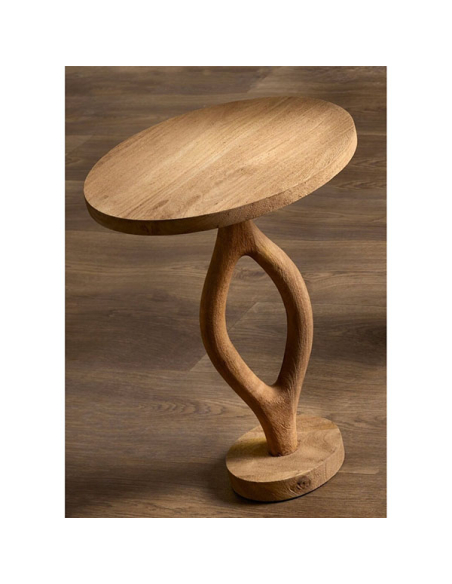 Mesa auxiliar Guppy madera natural. La mesa auxiliar Guppy de madera natural es perfecta para complementar la decoración de tus espacios. Sus medidas de 35dx44 cm la hacen ideal para colocar bebidas y aperitivos.