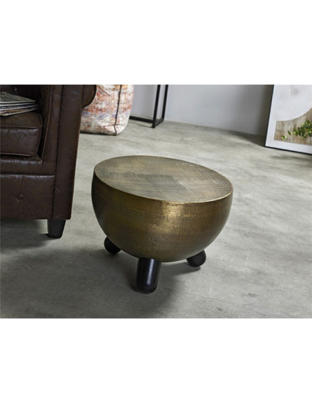 Mesa auxiliar oro envejecido. Si buscas un toque vintage y sofisticado, esta mesa auxiliar con acabado envejecido en tono dorado es perfecta para ti. Con medidas de 50dx36 cm, es ideal para aportar personalidad a tus espacios.