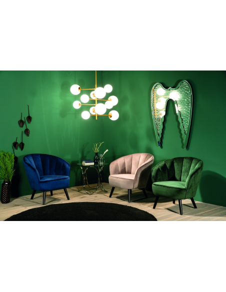 Sillón SL-895 tapizado en terciopelo color azul con patas de madera color negro. El Sillón SL-895 es una pieza de mobiliario sofisticada y elegante que aportará un toque de lujo y comodidad a tu espacio. Con su tapizado en terciopelo y patas de madera color negro, este sillón ofrece un diseño moderno y versátil que se adapta a diferentes estilos de decoración. Disponible en terciopelo color plata, verde y azul.