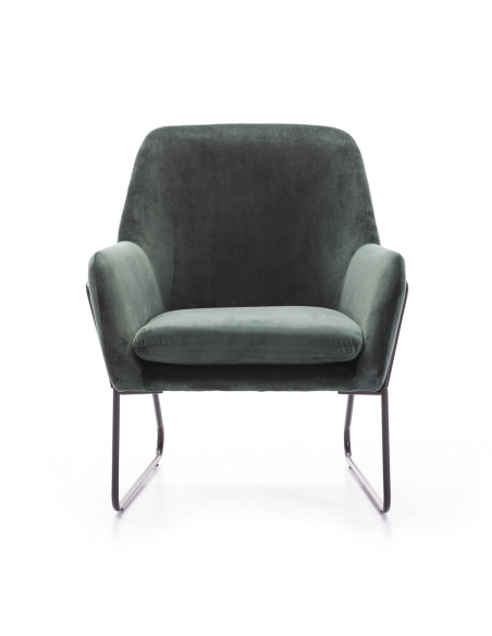 Sillón SL-894 tapizado en terciopelo color verde con patas de metal en acabado negro. De diseño sofisticado y moderno que aporta un aire de elegancia a tu hogar. Su forma y líneas limpias le otorgan una estética atractiva y actual. Las patas de metal en acabado negro ofrecen resistencia y estabilidad al sillón, al mismo tiempo que añaden un toque moderno y elegante al diseño. El Sillón SL-894 está diseñado para brindar comodidad y soporte adecuado al sentarse. Su respaldo y apoyabrazos bien acolchados permiten relajarse y disfrutar de momentos de descanso. Disponibles en beige, verde y azul.