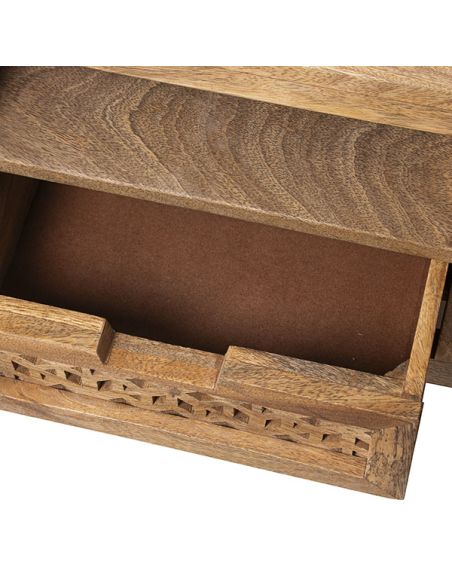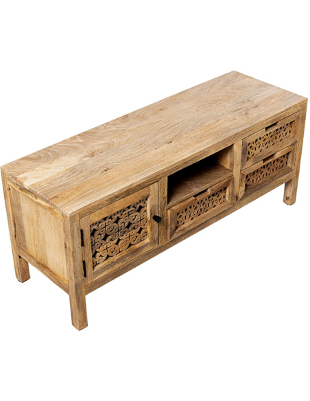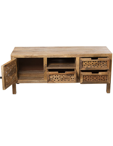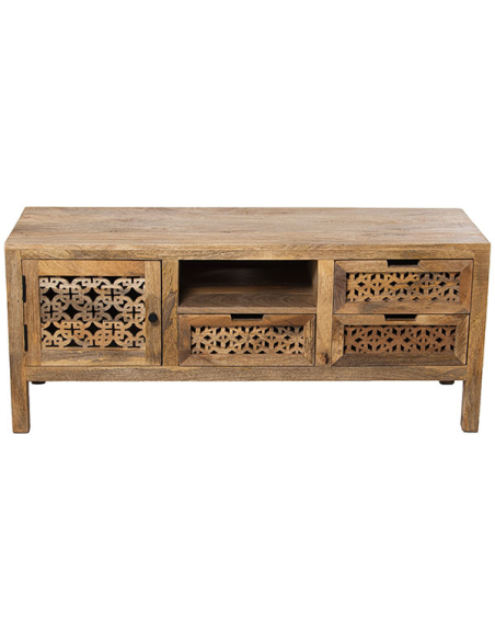 Mueble de tv Victoria madera de mango puerta y 3 cajones calados