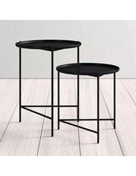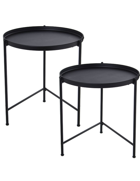 Set 2 mesas auxiliares metal negro. Un set sencillo con el que decorar el espacio y a la vez tener puntos de apoyo extra.