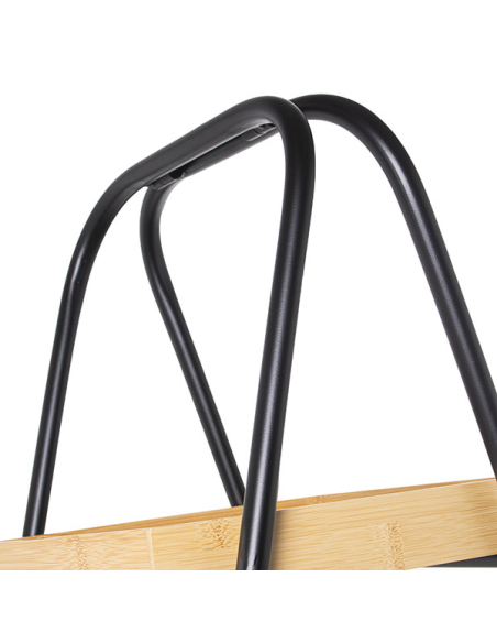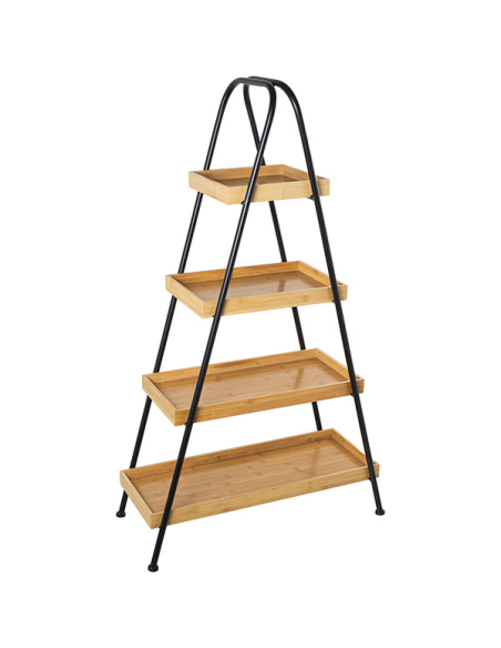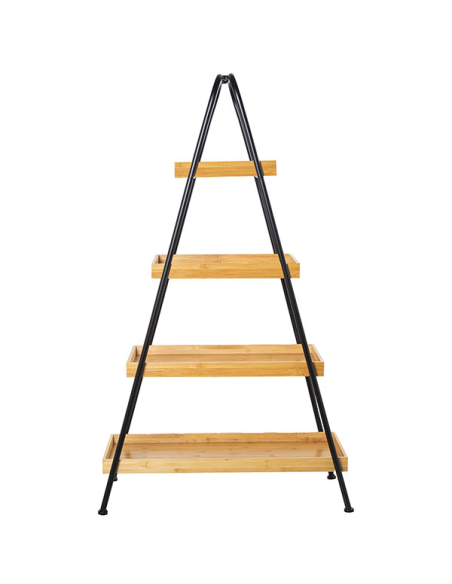 Estantería pirámide madera haya y metal negro. Estantería sencilla y práctica con la cual tener a la vista los objetos que queramos exhibir o necesitemos tener a mano. Una pieza que la podemos colocar en cualquier estancia de la casa, ya sea el salón, la zona de comedor, la entrada de casa o una habitación