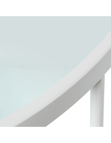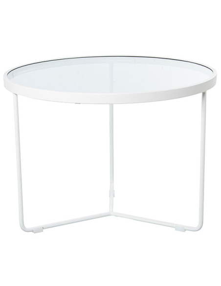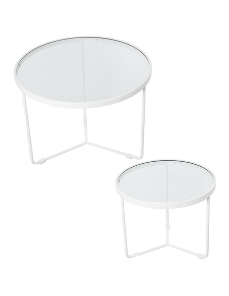 Sencillo y discreto Set 2 mesas de rincón de metal blanco y cristal con el cual decorar cualquier rincón de la casa.