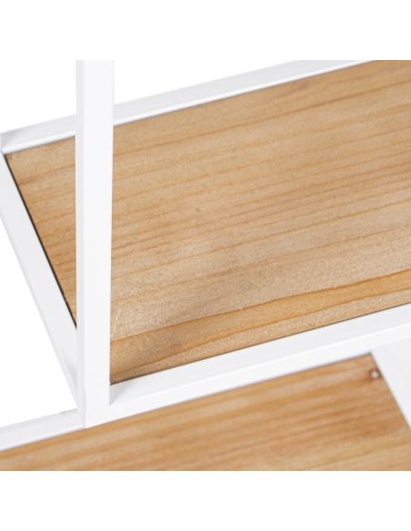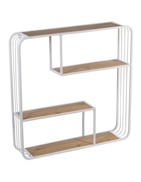 Sencilla Estantería de pared de metal blanco con baldas madera dm para colgarla en el espacio que consideremos necesario. Por su diseño nos puede servir para el recibidor, para el baño o para la habitación.