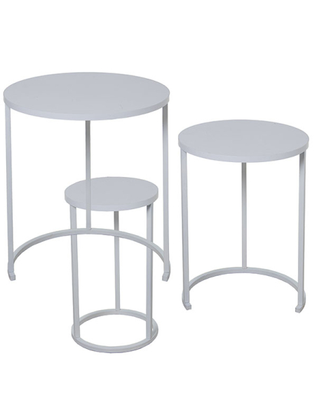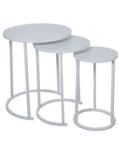 Set 3 mesas auxiliares madera color blanco con patas metal blanco