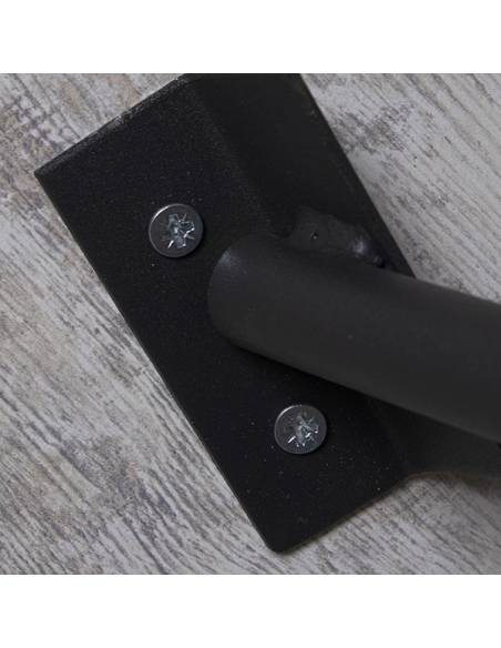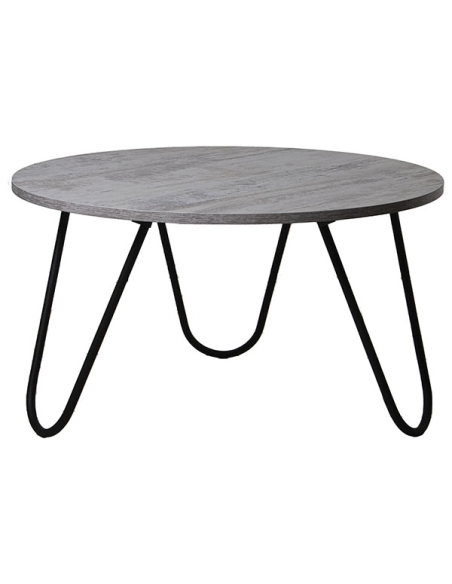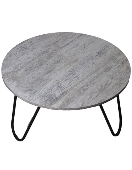 Sencilla y práctica Mesa de centro madera acabado blanco lavado y patas metal negro.
