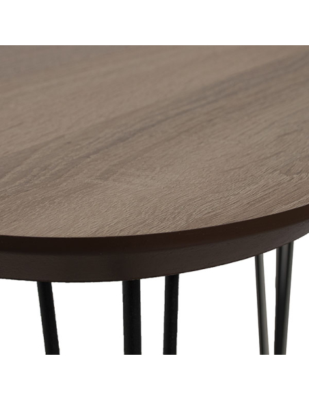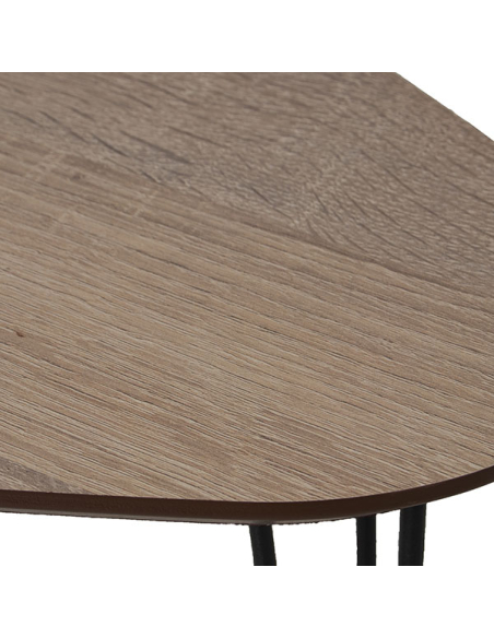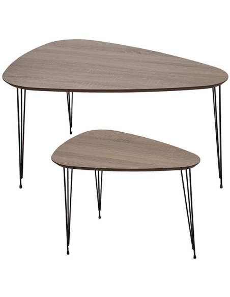 Set 2 mesas de centro madera natural y patas metal negro. Mesas para agregar un diseño moderno y diferente a la zona de salón. La madera en acabado natural dará al espacio un aspecto luminoso y fresco, mientras que las patas de metal negro añadirán un contraste audaz y contemporáneo. Son perfectas para combinar con cualquier estilo de decoración.