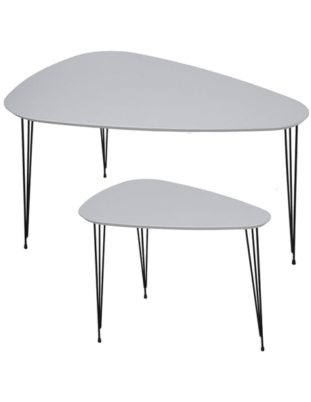 Set 2 mesas de centro madera acabado blanco y patas metal negro