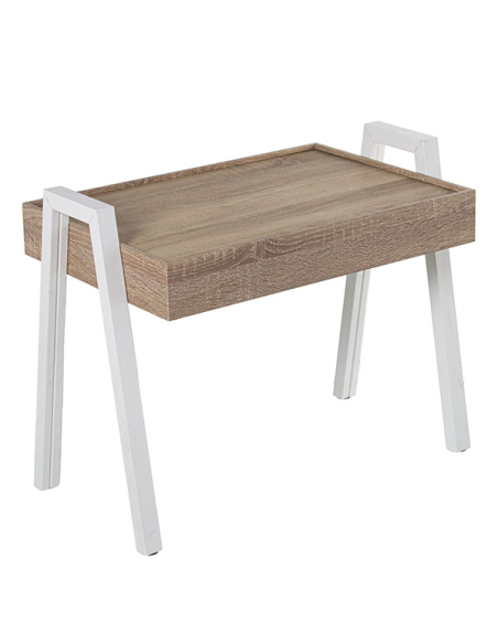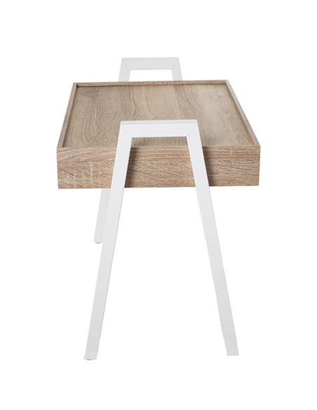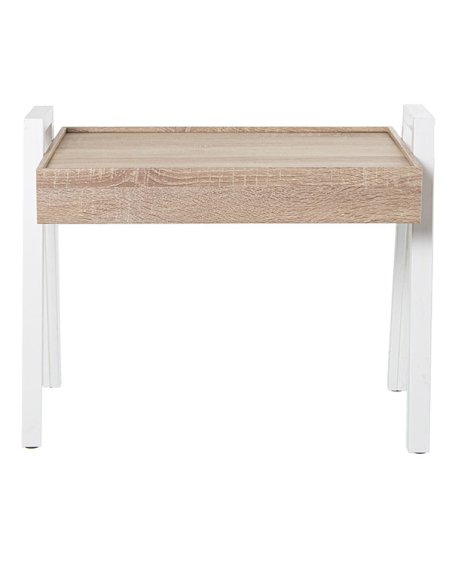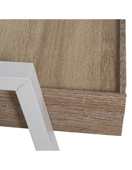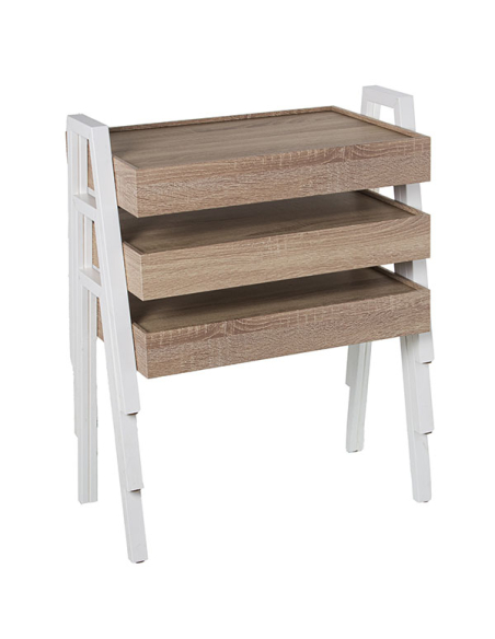 Set 3 mesas auxiliares apilables rectangular de madera acabado roble y metal blanco