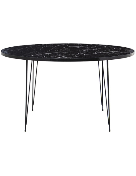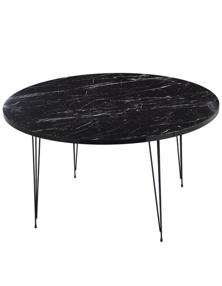 Mesa de centro redonda madera efecto mármol negro y patas metal