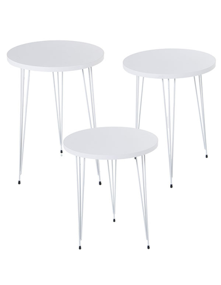 Set 3 mesas auxiliares madera acabado blanco y metal blanco