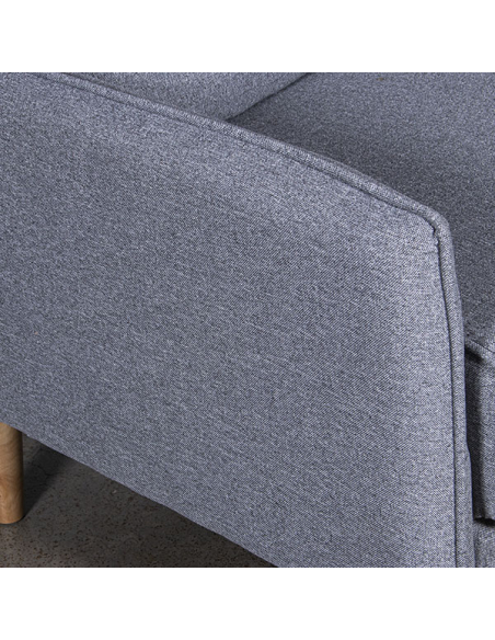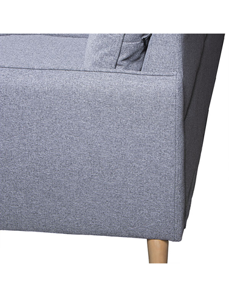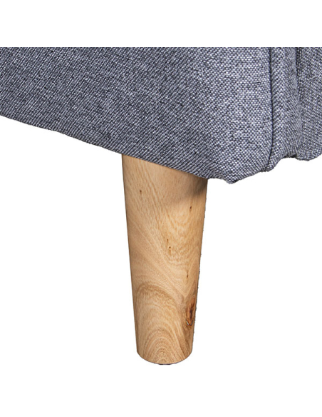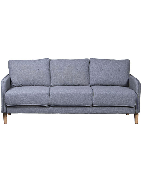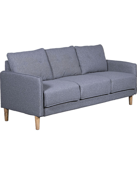 Sofá 3 plazas poliéster gris con patas madera de caucho