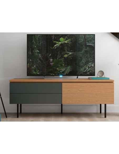 Mueble de TV 150 cm con patas metálicas modelo Kendra personalizable para que tengas la pieza que más se adapte a tu hogar y tus necesidades. Se trata de una colección de madera terminada con los mejores materiales, de alta calidad y entre los que podrás elegir varios acabados. Y si necesitas cualquier otro acabado o medidas puedes contactar con nosotras para crear la pieza de tus sueños.