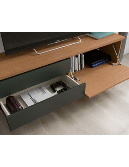 Personalizables: tapa, estructura y frentes en cualquier acabado de la carta de colores de madera y lacados, patas metálicas en blanco o negro.