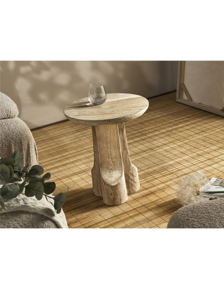 Mesa de rincón redonda 46 cm. Una mesita auxiliar con un diseño muy original en madera natural. ¡Una pieza ideal para el salón o dormitorio!