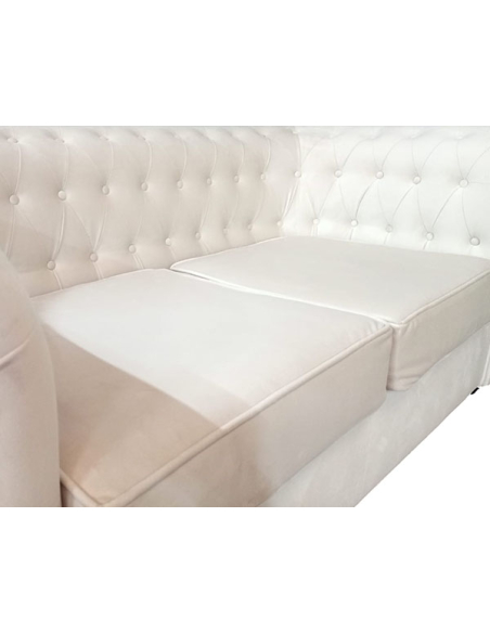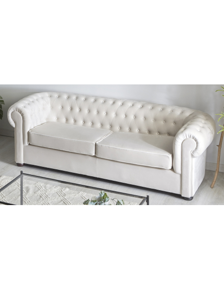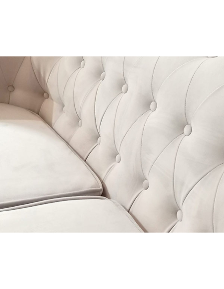 Sofá Chester Terciopelo 3 plazas. Con brazos curvos y respaldo de capitoné, el sofá Chester en terciopelo es una pieza muy elegante para tu salón, dormitorio o despacho.