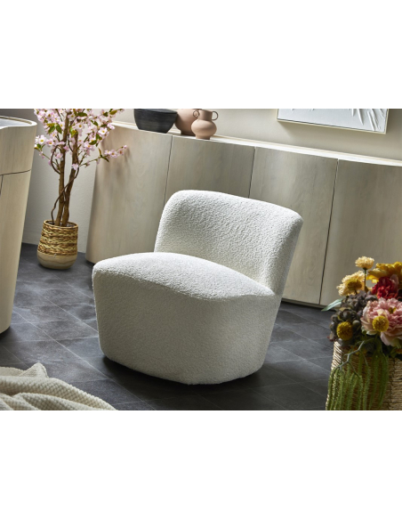 Sillón Freed rizo Blanco. Con un diseño compacto y moderno, el sillón Freed destaca en cualquier espacio. Su diseño curvo y rizo suave aseguran comodidad y calidez.