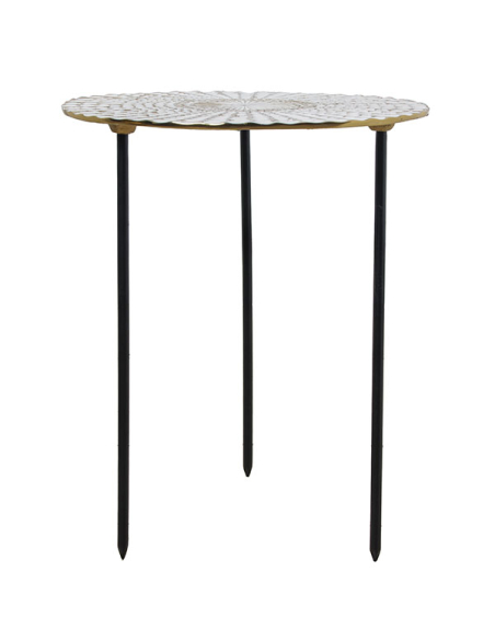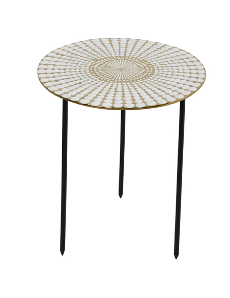 Mesa auxiliar metal esmaltado blanco y dorado, patas negras
