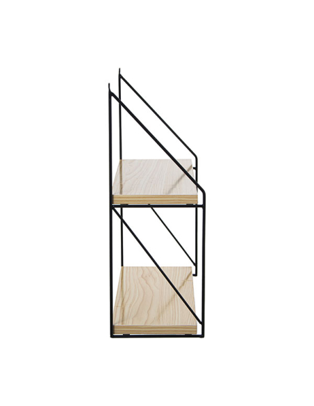 Estantería pared madera haya y metal negro, dos estantes con amplia capacidad de almacenamiento a la vista. La estructura negra metálica para colgar le aporta durabilidad y gran soporte a esta estantería. La fusión perfecta de funcionalidad y diseño contemporáneo, esta estantería añade un toque de estilo y versatilidad a cualquier habitación de tu hogar. Las estanterías de pared son ideales para aprovechar al máximo el espacio vertical, y esta no es la excepción. Con un diseño minimalista y moderno, esta estantería se integra fácilmente en diversos estilos de decoración. Instálala en la sala de estar, el estudio, la cocina o incluso en el dormitorio para agregar un toque de organización y estilo contemporáneo.
