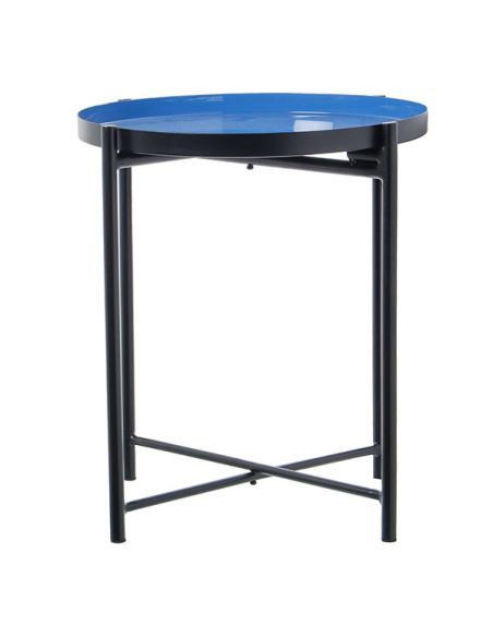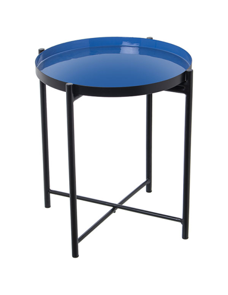 Mesa auxiliar metal esmaltado azul y negro, la parte superior es removible lo que la cambiante en una excelente bandeja para cualquier evento en tu hogar. Los bordes elevados en el contorno evitan los derrames y dan mayor contención a los elementos que se coloquen encima. La base es una estructura metálica en forma de X que se une en la parte superior e inferior. Esta mesa es liviana y duradera construida con materiales de alta calidad, lo que garantizan una larga vida útil. Los materiales son livianos lo que hace que esta mesa sea fácil de transportar. Ideal para la sala de estar o incluso para utilizar de mesa de noche. Este diseño de líneas limpias dan a esta mesa versatilidad. Podrás encontrar más colores en nuestra web.