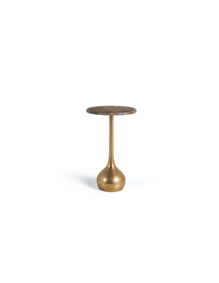 Mesa Auxiliar gota mármol, esta elegante mesa auxiliar es el complemento perfecto para cualquier espacio. Con una tapa de mármol redonda y un pie de aluminio en color dorado con forma redondeada, esta mesa combina lujo y estilo. Ya sea junto al sofá en la sala de estar o como un punto focal en el dormitorio, añadirá un toque de sofisticación a tu hogar. Se adapta fácilmente a cualquier parte de tu hogar, escritorio u oficina. Esta lujosa mesa deslumbrara a todos.