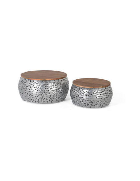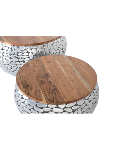 Set de 2 mesas de centro mango y aluminio