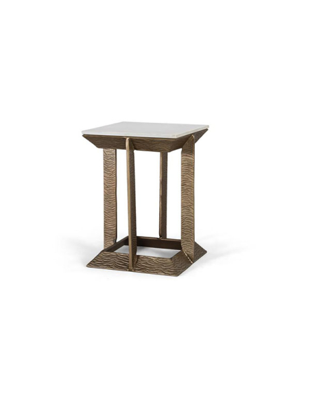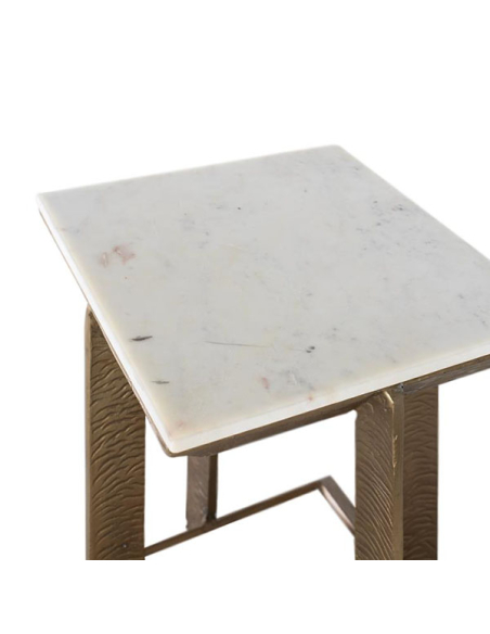 Mesa de centro Quequén cuadrada texturada con mármol, la estructura de la mesa está elaborada en metal de alta calidad, con un elegante acabado en color bronce que resalta su belleza y durabilidad. Las cuatro patas y la base cuadrada de metal no solo proporcionan estabilidad y resistencia, sino que también añaden un elemento de estilo único con su diseño meticulosamente elaborado. La tapa de mármol blanco, con su textura exquisita, es el punto focal de esta mesa de centro, capturando la atención con su elegancia atemporal y su belleza natural. La textura presente en toda la base de metal añade un toque adicional de interés visual y sofisticación, creando un contraste armonioso con la suavidad del mármol. Esta mesa de centro Quequén es más que una simple pieza de mobiliario; es una declaración de estilo que eleva instantáneamente cualquier sala de estar o espacio de entretenimiento. Ya sea que la utilices para exhibir objetos decorativos o como superficie funcional para tus reuniones, esta mesa seguramente se convertirá en el centro de atención de tu hogar. Con su combinación de materiales de alta calidad, diseño elegante y atención al detalle, la mesa de centro Quequén es la elección perfecta para aquellos que buscan agregar un toque de glamour y sofisticación a su hogar.