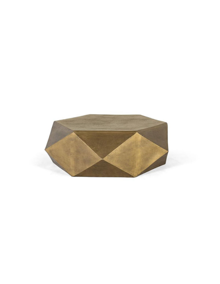 Mesa de centro hexagonal de aluminio, una figura geométrica fascinante, se presenta en esta mesa con un encanto excepcional. Cada lado está adornado con formas geométricas intrincadas que añaden un toque de sofisticación y modernidad a su diseño. El color bronce, con su cálido brillo metálico, realza aún más la belleza de esta pieza, creando un aura de elegancia y estilo en cualquier ambiente. Fabricada en aluminio de alta calidad, esta mesa no solo es visualmente impactante, sino también duradera y resistente. Su estructura sólida garantiza estabilidad y soporte para cualquier objeto que desees exhibir o colocar sobre ella, desde libros y revistas hasta decoraciones y aperitivos para tus invitados. La mesa de centro hexagonal es perfecta para añadir un toque de glamour y personalidad a tu sala de estar, salón o cualquier otro espacio donde decidas colocarla. Su forma única y su diseño atemporal la convierten en una pieza versátil que se adapta a una variedad de estilos de decoración, desde el moderno hasta el ecléctico.