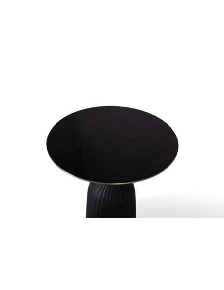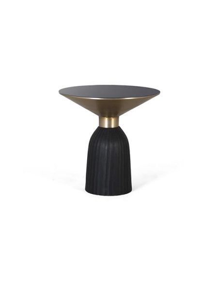 Mesa de rincón Mekong alta con tapa de vidrio templado, ofrece una superficie lisa y resistente para colocar libros, decoraciones o bebidas, mientras que su forma redonda añade un toque de suavidad y fluidez al diseño. Además, el vidrio templado proporciona una durabilidad excepcional y una seguridad adicional, asegurando que puedas disfrutar de tu mesa con total tranquilidad. La base cónica de metal dorado que sostiene la tapa de vidrio es un punto focal impresionante que añade un toque de brillo y glamour a la mesa. Esta base no solo proporciona estabilidad y soporte robusto, sino que también añade un elemento de diseño único y elegante que captará la atención de cualquier persona que entre en la habitación. La base de la mesa, fabricada en metal negro con textura, complementa perfectamente la elegancia de la base de metal dorado y proporciona un contraste visual intrigante. Esta base no solo añade un elemento de estilo industrial chic al diseño, sino que también proporciona una sólida estructura que garantiza la estabilidad y durabilidad de la mesa.