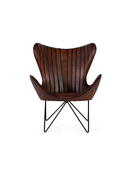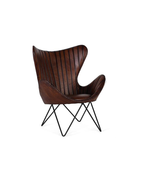 Sillón respaldo alto en cuero marrón, una obra maestra de comodidad y estilo. Este sillón cuenta con un diseño elegante y sofisticado, perfecto para añadir un toque de lujo a cualquier espacio de tu hogar. El respaldo alto con terminaciones extendidas y curvas no solo proporciona un soporte adicional para tu espalda y cuello, sino que también añade un elemento de elegancia y refinamiento al diseño. El cuero marrón tapiza tanto el asiento como el respaldo, ofreciendo una sensación de lujo y calidez al tacto. La base de metal con varillas negras no solo es resistente y duradera, sino que también añade un toque moderno y contemporáneo al sillón. Las varillas negras crean un contraste visual interesante con el cuero marrón, añadiendo profundidad y estilo al diseño general. Este sillón es más que una simple pieza de mobiliario; es una declaración de estilo y elegancia. Ya sea que lo coloques en el salón como una pieza de acento o en el estudio como un lugar acogedor para leer o trabajar, este sillón se convertirá rápidamente en el lugar favorito de tu hogar.