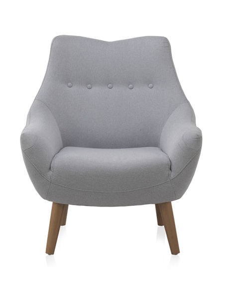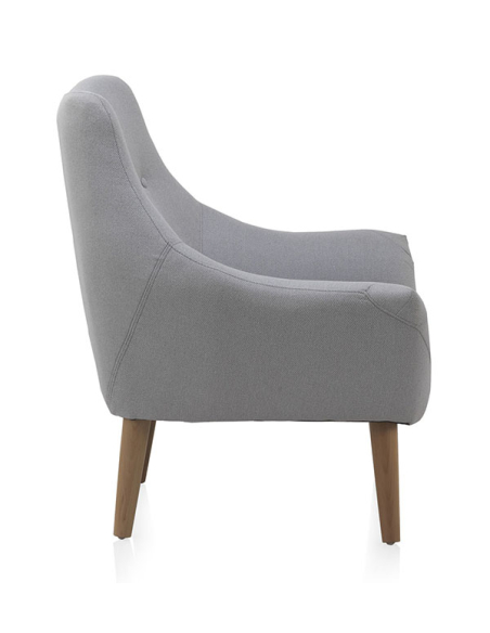 Sillón tapizado color gris claro, confeccionado con cuidado y atención al detalle, este sillón combina la solidez del pino con la elegancia de unas patas de madera de haya, garantizando una base estable y duradera. El confort está asegurado gracias a su respaldo y asiento acolchados, que invitan a relajarse después de un largo día. Los recortes con costuras al tono añaden un toque de sofisticación y cohesión al diseño, mientras que las patas cilíndricas proporcionan un soporte sólido y estético. Los botones forrados decorativos en el respaldo agregan un toque de encanto clásico, elevando el estilo de cualquier espacio.