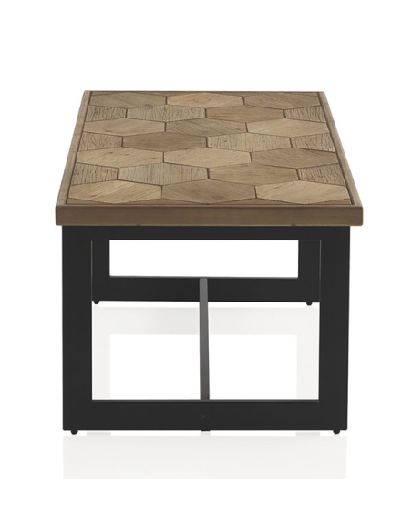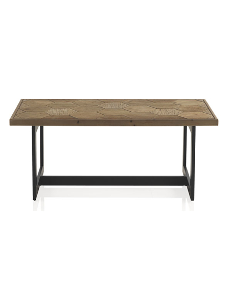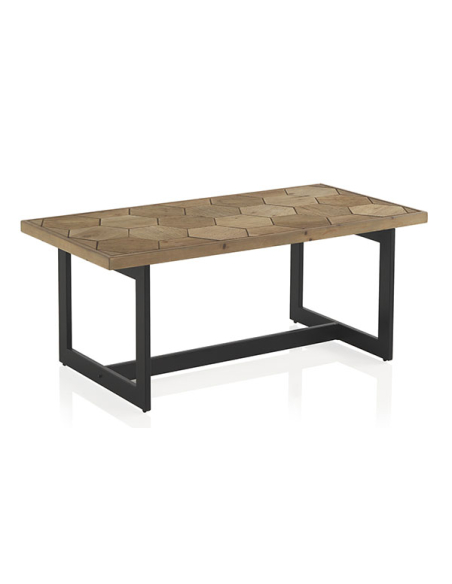 Mesa Dionisio centro madera de fresno pie metálico, el tablero de la mesa presenta un cautivador patrón hexagonal decorativo, que añade un toque de sofisticación y originalidad a su diseño. Esta mesa es perfecta para dar un toque de estilo único a tu hogar. El pie metálico ancho en color negro ofrece estabilidad y resistencia, mientras complementa a la perfección el tablero de madera, creando un contraste visualmente atractivo. Con sus dimensiones ideales, la mesa Dionisio Centro es perfecta para colocar en el centro de tu sala de estar o como pieza destacada en cualquier espacio, proporcionando un lugar funcional y elegante para colocar tus objetos decorativos o disfrutar de una tarde de café con amigos.