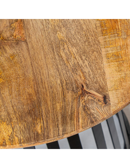 Mesa auxiliar redonda base cónica 45 cm, es perfecta para aquellos que buscan un toque de naturalidad y sofisticación en su decoración. La tapa muestra las hermosas vetas del mango, aportando calidez y un aspecto orgánico a cualquier habitación. La base cónica de metal con planchuelas anchas no solo añade un toque moderno, sino que también garantiza una estabilidad y durabilidad excepcionales. Equipada con antideslizantes en la base, esta mesa se mantiene firme en su lugar, protegiendo tus pisos. Ideal para comedores, salas de estar o cualquier espacio que necesite una pieza central elegante y funcional.