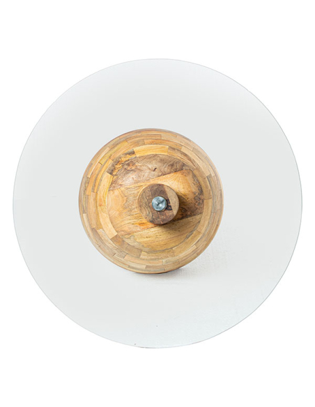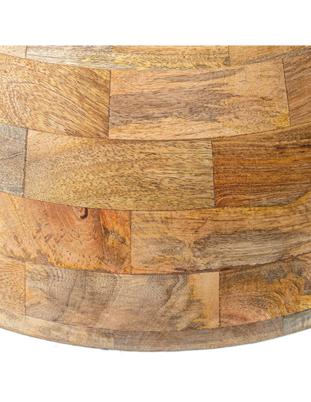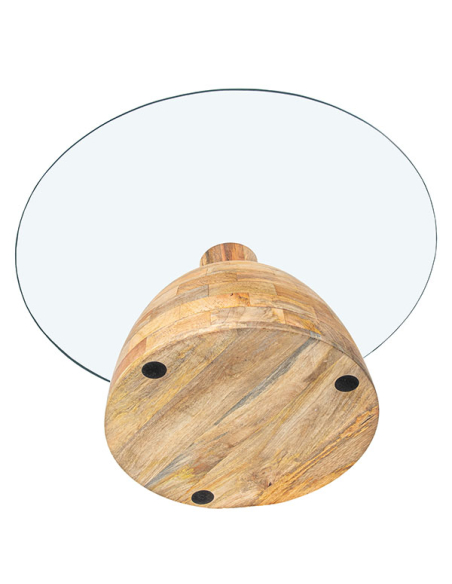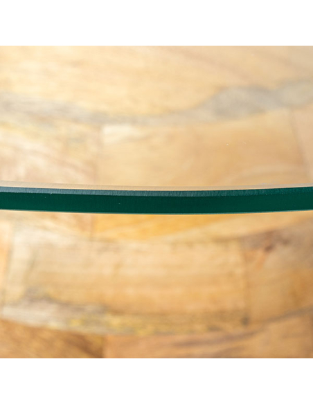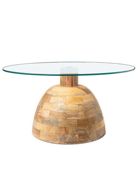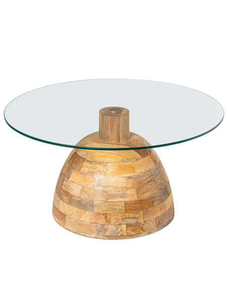 Mesa auxiliar cristal mango 78 cm, es una obra maestra que combina diseño artístico y calidad excepcional. La base, elaborada con recortes de madera de mango finamente encastrados, crea un impresionante efecto jarrón que se estrecha en la parte superior y se ensancha hacia la base. Este diseño único no solo es visualmente atractivo, sino que también proporciona una estructura sólida y duradera. La tapa de cristal permite una vista clara de la base artesanal, convirtiendo esta mesa en una pieza central perfecta para cualquier espacio contemporáneo. Ideal para quienes buscan un mueble que combine arte y funcionalidad en su hogar.