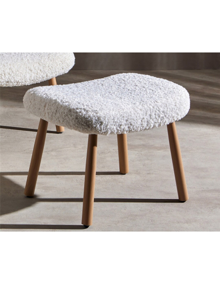 Banqueta Akin borrego largo, las patas tubulares, con un encantador efecto madera, no solo brindan un estilo rústico, sino que también cuentan con una base antideslizante para mayor seguridad y estabilidad. Esta banqueta es ideal para combinar con la butaca Akin, sirviendo como un cómodo apoya pies o un asiento adicional. Perfecta para salones, rincones de lectura o espacios de descanso, es la solución ideal para quienes buscan funcionalidad y elegancia en su decoración.