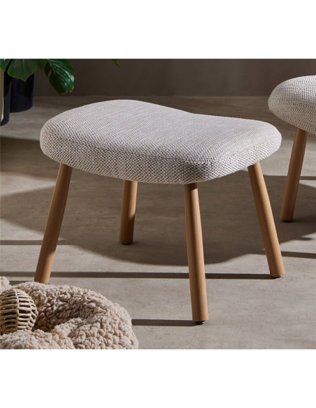 Banqueta Akin natural, las patas tubulares, con un encantador efecto madera cuentan con una base antideslizante para mayor seguridad y estabilidad. Esta banqueta es ideal para combinar con la butaca Akin, sirviendo como un cómodo apoya pies o un asiento adicional. Perfecta para salones, rincones de lectura o espacios de descanso, es la solución ideal para quienes buscan funcionalidad y elegancia en su decoración.
