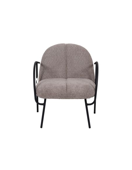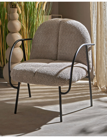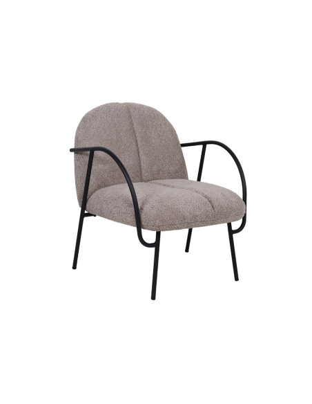 Butaca Badru rizo suave topo, el respaldar curvado, con una costura en el centro, y el asiento con costura central no solo ofrecen un diseño atractivo, sino también un confort excepcional. Los apoyabrazos curvos en color negro añaden un contraste moderno, mientras que las patas elevadas de metal negro aseguran estabilidad y un toque contemporáneo. Perfecta para salones, dormitorios o áreas de descanso, esta banqueta es ideal para quienes buscan un mueble que combine funcionalidad y estética en su decoración.