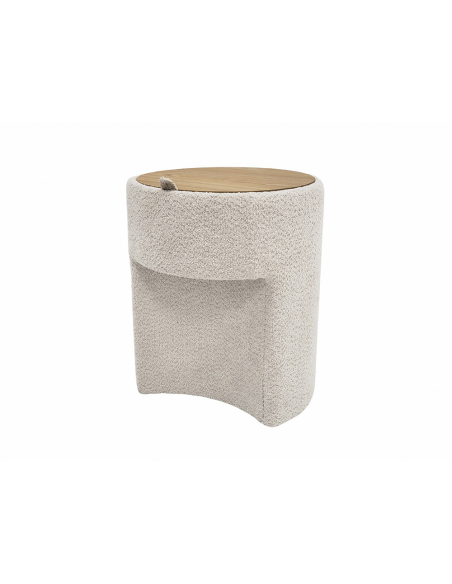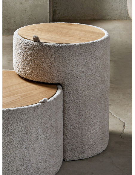 Mesa auxiliar con almacenaje bucle suave 57 cm, con un diseño cilíndrico bajo es perfecta para complementar cualquier espacio moderno. Su estructura tapizada en textil le confiere una textura suave y elegante, mientras que la tapa de madera redonda añade un toque natural al conjunto. Además, su funcionalidad destaca por ofrecer un práctico espacio de almacenaje interno, ideal para guardar objetos pequeños y mantener el orden en tu hogar. Versátil y estilosa, esta mesita es perfecta para acompañar sofás o sillones, y puedes encontrar su versión a juego en nuestro catálogo, completando así tu decoración.