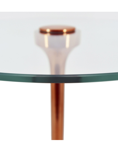 Mesita auxiliar malta con cristal, destaca por su diseño delicado y sofisticado, perfecta para agregar un toque de elegancia a cualquier espacio. La base escalonada en color bronce aporta una estética moderna y refinada, mientras que la tapa de cristal translúcido redonda complementa el conjunto con su sutil transparencia, dejando que la luz fluya y realzando su diseño. Ideal para salones, entradas o como mesa de apoyo, esta pieza se adapta a diversos estilos decorativos, aportando un toque exquisito y funcional en un mueble compacto y de gran impacto visual.