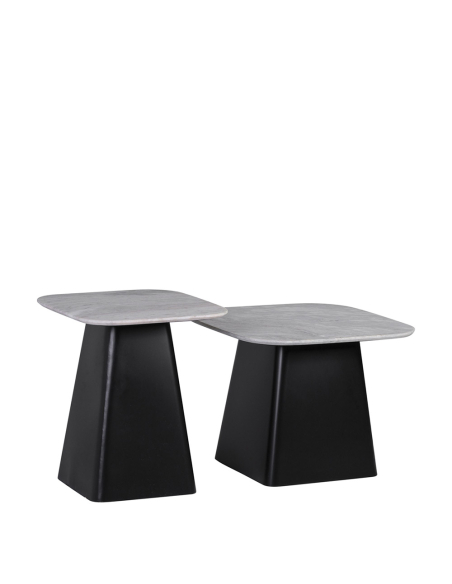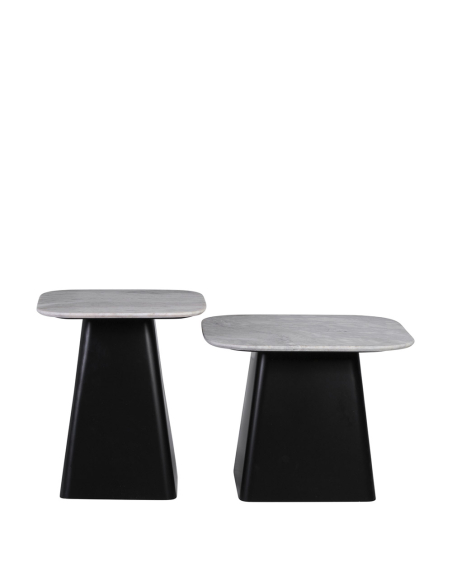 Set 2 mesas auxiliares mármol negra, combina sofisticación y funcionalidad, presentando una base de color negro que aporta modernidad y estabilidad. Las tapas de mármol cuadradas, con laterales redondeados, añaden un toque de lujo y suavidad, creando un contraste perfecto con la base oscura. Con un diseño exquisito y delicado, estas mesas son ideales para espacios contemporáneos, como salones o áreas de descanso, donde buscan agregar un toque refinado y sofisticado a su decoración.
