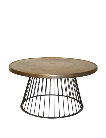Mesa de centro Antique grande bronce envejecido, con una elegante estructura metálica de color negro, combinada con una tapa en bronce envejecido que resalta su estilo industrial. El diseño limpio y robusto presenta detalles cuidadosamente elaborados, ofreciendo un equilibrio perfecto entre lo moderno y lo vintage. Ideal para aportar un toque sofisticado y duradero a cualquier espacio.