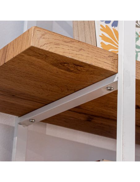 Estantería Kelly 5 baldas blanco, es la solución perfecta para el almacenamiento y la decoración en el hogar. Fabricada con materiales de alta calidad, combina un marco metálico blanco con estantes de madera de DM, ofreciendo una apariencia ligera y moderna. Los estantes amplios son ideales para organizar libros, plantas, accesorios decorativos o artículos de uso diario. Su diseño abierto permite una fácil accesibilidad y aporta un toque contemporáneo a cualquier habitación. Con una estructura robusta, esta estantería es perfecta para salones, oficinas o dormitorios.