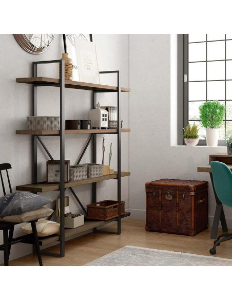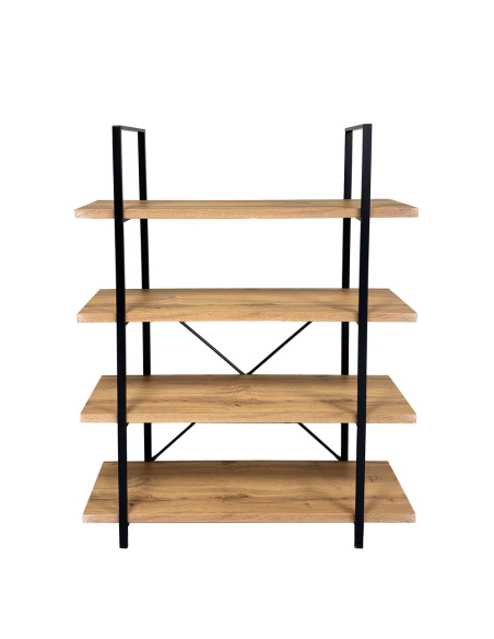 Estantería Kelly 4 baldas negro, es la solución perfecta para el almacenamiento y la decoración en el hogar. Fabricada con materiales de alta calidad, combina un marco metálico negro con estantes de madera de DM, ofreciendo una apariencia ligera y moderna. Los estantes amplios son ideales para organizar libros, plantas, accesorios decorativos o artículos de uso diario. Su diseño abierto permite una fácil accesibilidad y aporta un toque contemporáneo a cualquier habitación. Con una estructura robusta, esta estantería es perfecta para salones, oficinas o dormitorios.