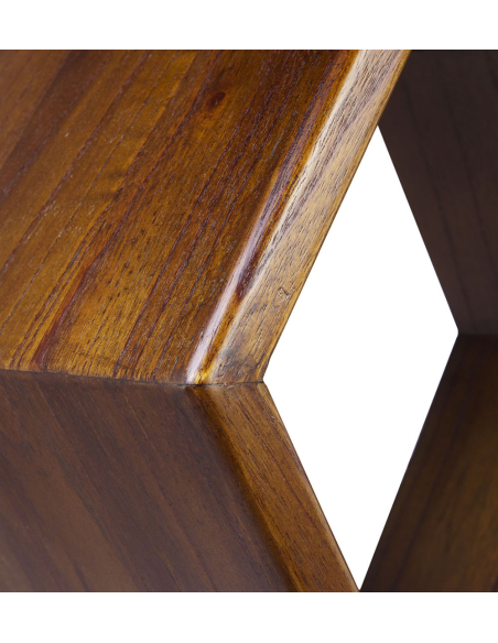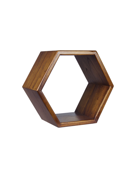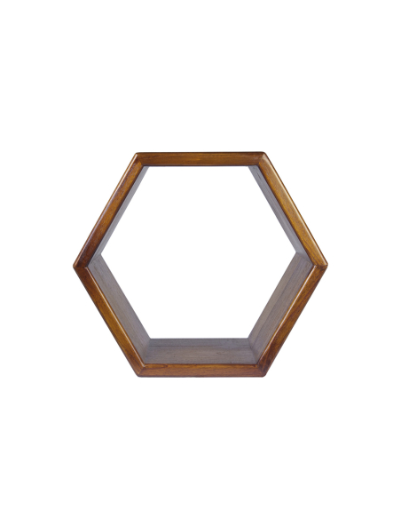 Estante Artic hexagonal, fabricado en madera maciza con un cálido acabado oscuro, este estante de diseño limpio y geométrico es perfecto para exhibir pequeños objetos decorativos, plantas o libros. Su forma hexagonal simple es la esencia del estilo nórdico. Gracias a su estructura abierta y su tamaño versátil, puedes usarlo solo como un punto focal sutil o combinar varios estantes para crear una composición mural personalizada y dinámica. Es ideal para salones, dormitorios, estudios o incluso pasillos, aportando un espacio de almacenaje ligero y decorativo. El estante incluye el sistema de anclaje necesario para una instalación sencilla y segura en la pared. Su construcción en madera maciza garantiza durabilidad y la belleza atemporal de un material natural, aportando calidez y un diseño depurado a cualquier estancia.