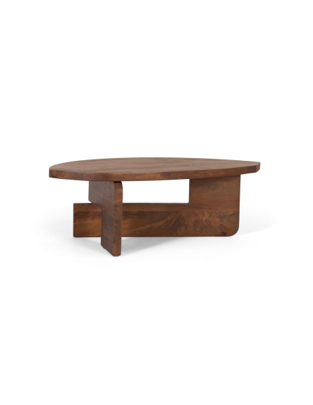 Mesa de centro oval madera, pensada como escultura funcional. Su tablero oval en mango, de canto generoso y tacto sedoso, descansa sobre una base entrecruzada que dibuja planos y huecos arquitectónicos. El acabado avellana aporta profundidad a las vetas y permite que combine igual de bien con sofás claros, piel envejecida o textiles neutros. El perímetro redondeado favorece la circulación alrededor del sofá y minimiza golpes, ideal para hogares con peques o espacios de paso. La base proporciona estabilidad y soporta con solvencia bandejas, libros o una comida informal. Gracias a su diseño abierto, el mueble “respira” y no recarga ambientes pequeños, manteniendo una presencia serena pero con personalidad. Requiere un mantenimiento mínimo: limpieza con paño suave y, de forma ocasional, cera o aceite específico para nutrir la madera y realzar su brillo natural.