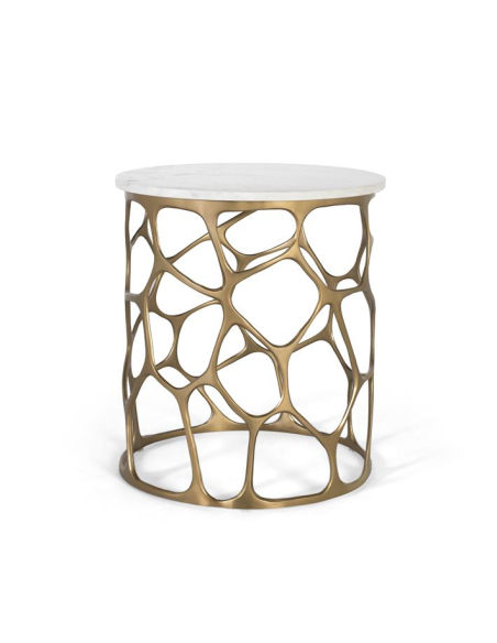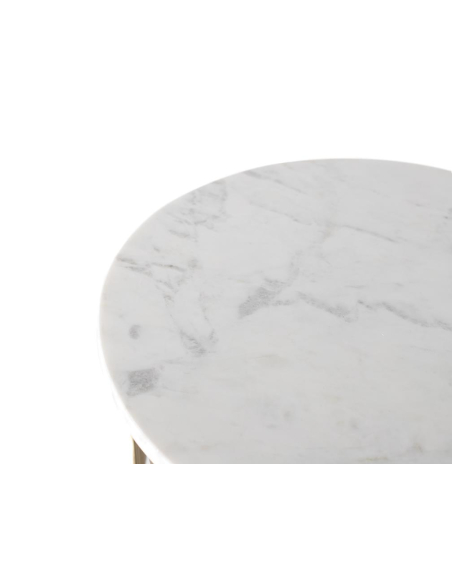Mesa de centro Legato angosta, en un formato estilizado que se adapta a frentes de sofá y livings estrechos. Su tapa alargada de mármol blanco ofrece superficie generosa sin invadir el paso, mientras el pedestal de aluminio dorado estiliza y permite una buena circulación. Perfecta para departamentos, salas con circulación longitudinal o para ubicar entre dos butacas creando una isla de apoyo. Encaja en estilos contemporáneos, clásicos renovados y ambientes luminosos.