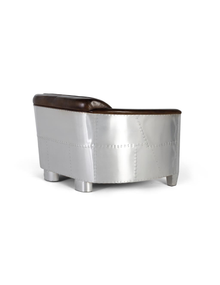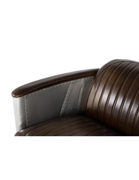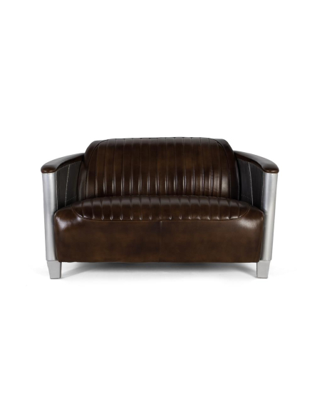 Sofá Portamento Chester dos plazas, la piel marrón aporta calidez y durabilidad, mientras la carcasa de aluminio pulido con remaches crea reflejos sutiles que iluminan el entorno. Los asientos amplios con canalé brindan apoyo cómodo para ver series o recibir amigos. Su diseño de líneas redondeadas suaviza el metal y lo hace fácil de integrar: va genial con mesas bajas de madera maciza, estanterías negras y fibras naturales. Si te gusta mezclar materiales y contar una historia con tus muebles, este sofá será el protagonista.