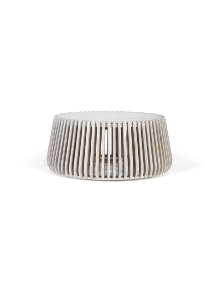 Mesa de centro varillas combinadas, la base cilíndrica de listones de madera de mango y acabados en un tono claro que aporta ligereza genera un ritmo visual que deja pasar la luz y crea sombras decorativas. La tapa de mármol natural añade frescura y sofisticación, convirtiéndola en pieza clave para livings modernos. El formato redondo suaviza la circulación frente al sofá y se integra a diferentes estilos: costero, nórdico, contemporáneo o boho chic. Úsala para destacar un jarrón, una bandeja de café o libros de arte; todo se ve mejor sobre su superficie de piedra. Diseño, textura y nobleza en un solo gesto.